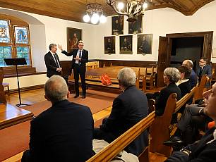 Im Rahmen des Begleitprogramms haben am frühen Donnerstagmorgen elf Volkswirtschaftsdirektorinnen und -direktoren das Rheinfelder Rathaus besucht. Stadtammann Franco Mazzi begrüsste sie im Rathaussaal, wo er ihnen die Stadt Rheinfelden vorstellte und von der Geschichte Rheinfeldens von früher bis heute erzählte.