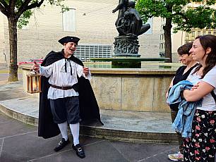Zschokke-Brunnen mit den Worten "liebe Leute lasst euch sagen, unsere Glock hat neun geschlagen. Höret ihr der Stunden Klang, dann ists Zeit für Rudolfs Gang", vor dem Kunstmuseum erwartete.